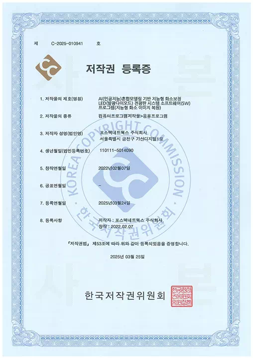AI(인공지능)혼합모델링 기반 지능형 화소보정 LED(발광다이오드) 전광판 시스템 소프트웨어(SW)프로그램 (지능형 화소 이미지 복원)
