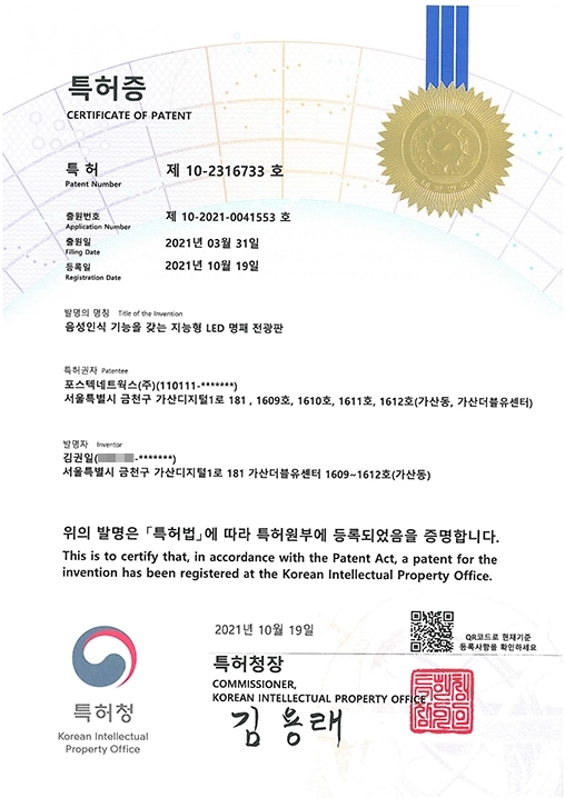 음성인식 기능을 갖는지능형 LED 명패 전광판