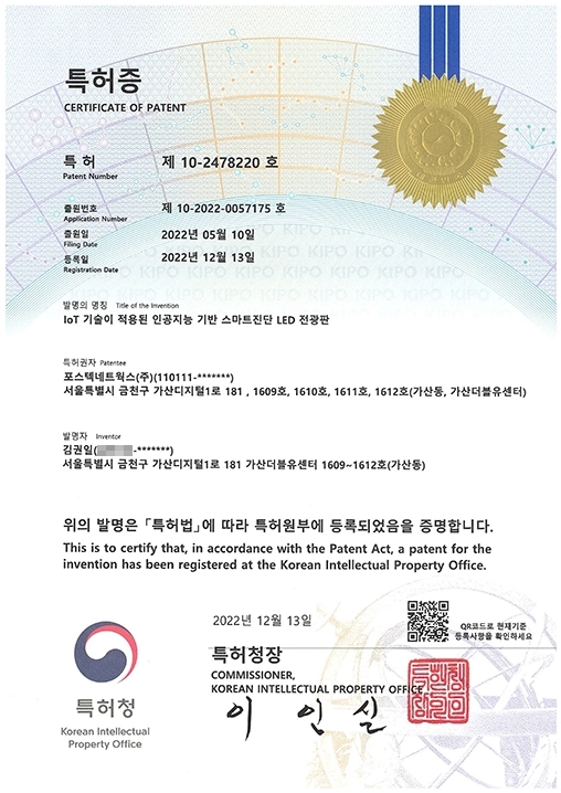 IoT기술이 적용된인공지능 기반스마트진단 LED전광판